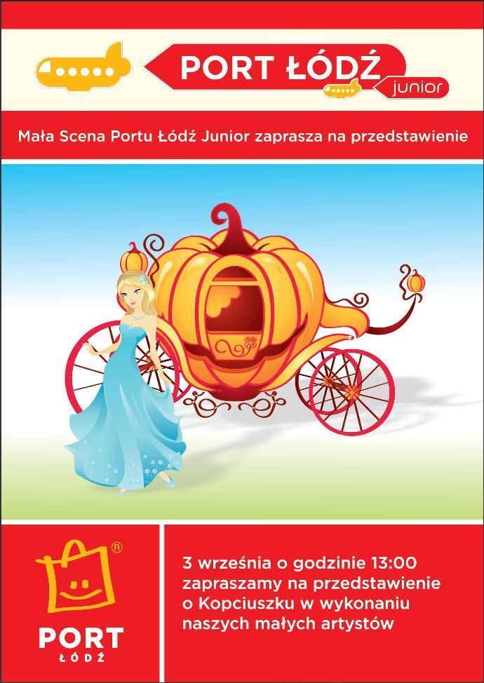 3 września mali aktorzy będą mieli swój wielki dzień w Porcie Łódź. – Wakacyjne warsztaty teatralne to inicjatywa, która spotkała się z ogromnym zainteresowaniem zarówno dzieci, jak i rodziców. Okazało się, że w najmłodszych drzemią prawdziwe talenty. Podczas prób, które odbywały się w Porcie Łódź Junior nasi mali artyści nie tylko uczyli się ról, ale przede wszystkim świetnie się bawili. Teraz przed nimi ważny moment - debiut na scenie, dlatego serdecznie zapraszamy na przedstawienie „Kopciuszek”. Na niezapomnianą zabawę mogą liczyć nie tylko dzieci, które brały udział w warsztatach. Na wszystkie maluchy po przedstawieniu czekają konkursy z nagrodami - informuje Emilia Lange- Cichocka, menadżer działu marketingu Portu Łódź.