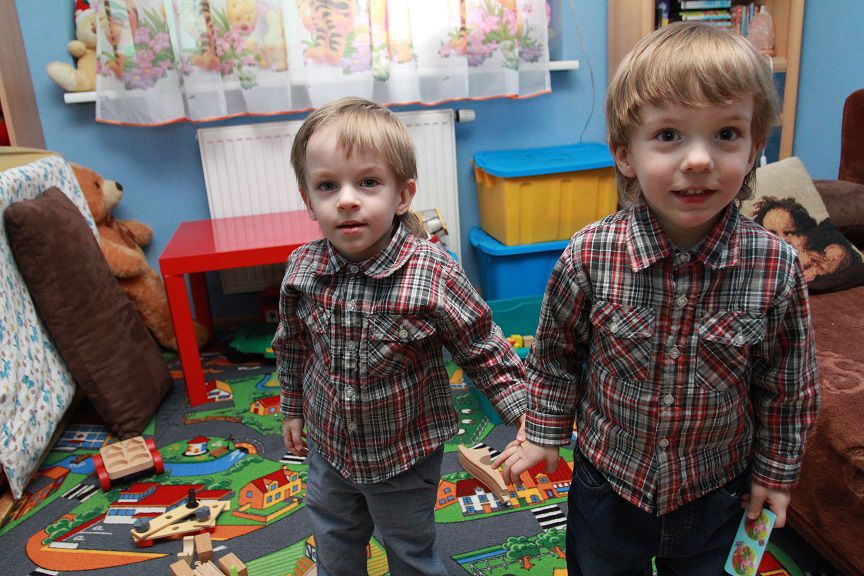 — Synowie ćwiczą codziennie. Mają też zajęcia wczesnego wspomagania rozwoju. Obaj na szczęście chodzą, chociaż Grześ trochę się asekuruje. Mają problemy, które specjaliści nazywają neurologopedycznymi i zaburzenia integracji sensorycznej. Boją się, kiedy słyszą szczekanie psa. Dosyć długo musieli się przekonywać do śniegu, bo na początku nawet nie chcieli go dotknąć — opowiada Jolanta Stolarczyk. A przy tym chłopcy bardzo często chorują. Łapią ich wszelkie infekcje.